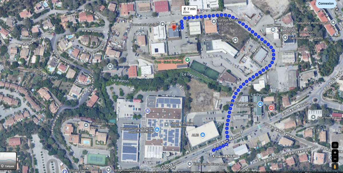 Le trajet fléché part de l'Aldi d'où vous quittez le bd Jean Moulin
